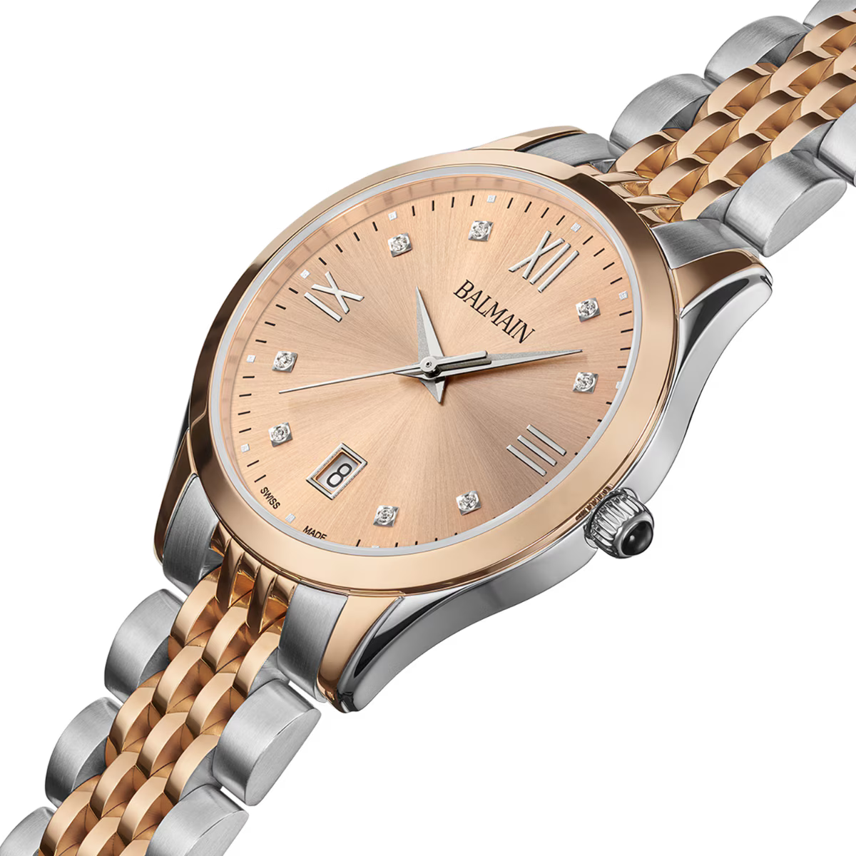 The Balmain Classic R is an elegant women’s watch that blends radiant sophistication with a modern design inspired by Parisian Haute Couture.