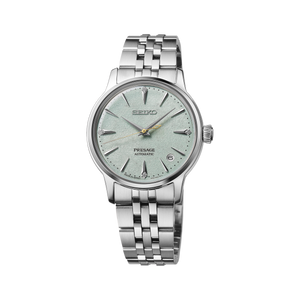 Seiko Presage Cocktail Time watches are inspired by Japanese cocktail culture and specific drinks from the Star Bar in Tokyo’s sophisticated Ginza area – home to some of the city’s best cocktails. Crafted under the theme of ‘Daytime Cocktail Party,’ this piece is one of three frozen cocktail-inspired timepieces fit for Spring and Summer. This design is inspired by the ‘Frozen Mojito’ drink, an icy mix of white rum, sugar, lime juice, soda water and mint. mixed by Star Bar’s Head Bartender, Mr Hisashi Kishi – International Bar Association World Champion and Japanese Government Contemporary Master Craftsman. Compact at only 34mm and featuring four diamond indices, this timepiece features a light green textured dial that resembles crushed ice. It features a tapered and mirror-finished multi-link bracelet. Powered by an in-house 4R35 automatic calibre, accurate to +45/-35 seconds per day with a 40-hour power reserve. Seiko Presage: Timeless looks, precise mechanical timekeeping. Minimalistic watch designs with a distinctly Japanese aesthetic.