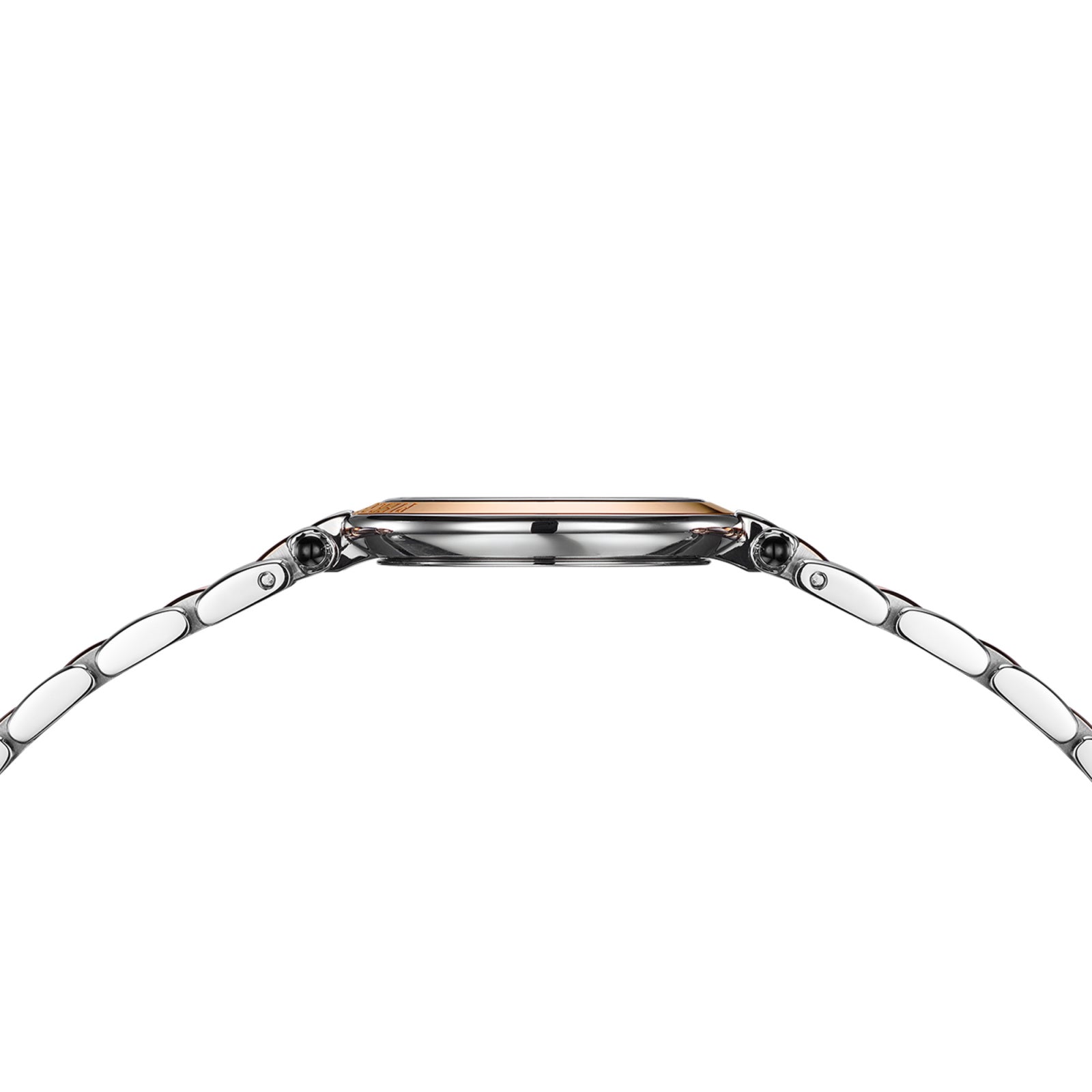The bicolour stainless steel and rose gold PVD-coated case and bracelet provide a refined contrast, combining modern elegance with classic Parisian style.