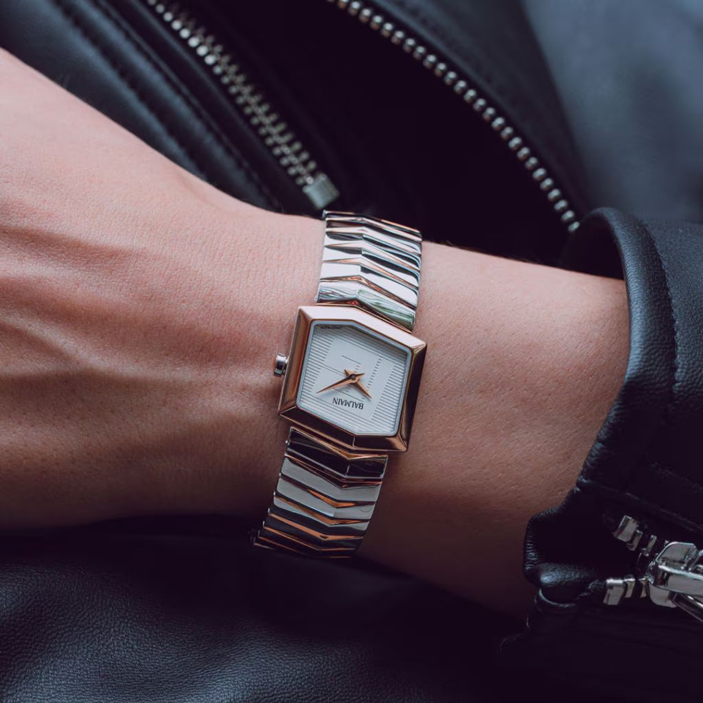 The Balmain Taffetas is a jewellery-inspired women’s watch that blends asymmetric elegance with modern charm.